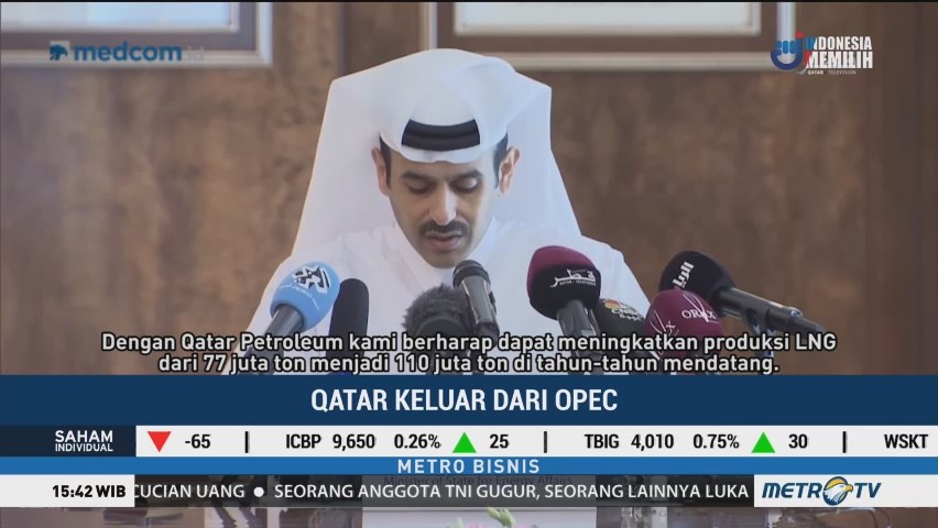 Pemerintah Qatar mengumumkan akan keluar dari OPEC per Januari 2019 mendatang. Keputusan ini diambil lantaran Qatar ingin fokus dalam pengembangan dan peningkatan produksi gas bumi. Cek Berita dan Artikel yang lain di Google News