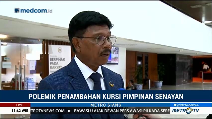 Partai NasDem menolak keras penambahan kursi pimpinan MPR, DPR dan DPD karena dinilai mencederai kepercayaan rakyat. Ketua Fraksi Partai NasDem DPR Johnny G Plate mengatakan tak ada urgensi untuk menambah kursi pimpinan. NasDem lebih mendorong untuk merevisi UU MD3 secara komprehensif dengan memperhatikan esensi dan substansi pokok dalam rangka membuat roadmap menuju parlemen modern. Cek Berita dan Artikel yang lain di Google News