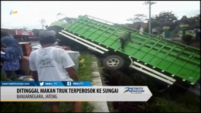 Truk tronton bermuatan perabotan milik dinas pertanian Kabupaten Banjarnegara, Jawa Tengah terperosok di sungai. Tidak ada korban jiwa dalam kecelakaan ini, akibatnya isi truk bernopol BE 9672 BT mengalami kerusakan. Sugiman sopir truk terkejut saat mengetahui truknya jatuh ke selokan ketika ditinggal makan di warung pinggir jalan.