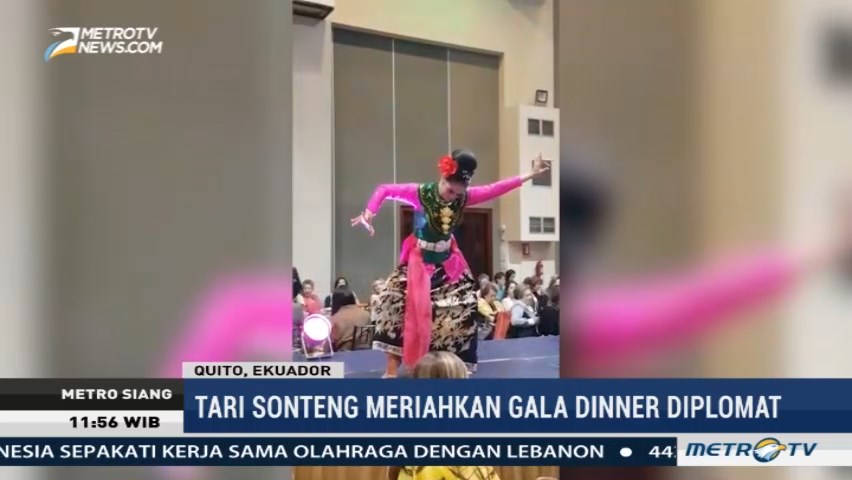 Tari Sonteng, sebuah tari dari Jawa Barat memikat hati para pasangan diplomat Ekuador dalam acara Gala Dinner Tahunan. Indonesia menjadi satu-satunya perwakilan asing di Wkuador yang mempersembahkan tarian tradisionalnya. Cek Berita dan Artikel yang lain di Google News