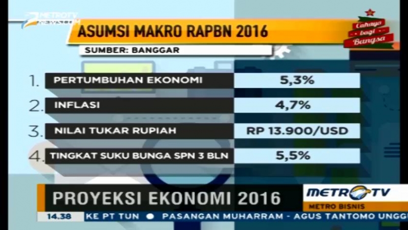 Perekonomian Indonesia sepanjang tahun 2015 terus diwarnai oleh pelemahan ekonomi nasional dan tekanan ekonomi global. Namun iklim ekonomi nasional diprediksi bergerak positif pada tahun 2016, Jumat (11/12/2015). Cek Berita dan Artikel yang lain di Google News