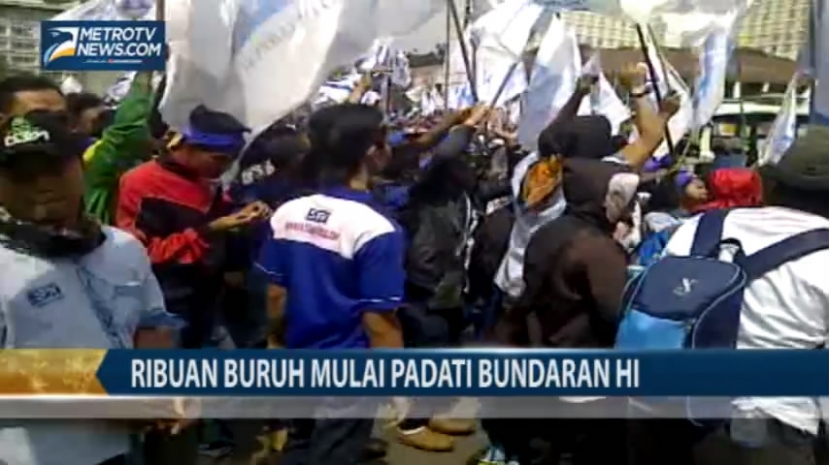 Metrotvnews.com, Jakarta: Ribuan buruh mulai memadati Bundaran HI, Jakarta, Rabu (10/12/2014) pukul 10.00 WIB. Aksi kali ini, buruh menuntut menolak kenaikan harga Bahan Bakar Minyak (BBM), menolak kenaikan UMP nasional dan DKI, hapuskan outshorcing, dan cabut upah minimun. Lihat video di sini: http://youtu.be/kNUbAsV0Szw Cek Berita dan Artikel yang lain di Google News