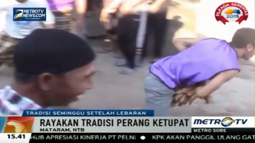 Menyambut hari ketujuh lebaran, ratusan warga Lombok Utara Nusa Tenggara Barat merayakan tradisi perang ketupat di samping masing. Warga saring serang dan lempar dengan menggunakan ketupat dan bertujuan untuk mempererat silaturahmi warga setempat, Jumat (24/7/2015). Cek Berita dan Artikel yang lain di Google News