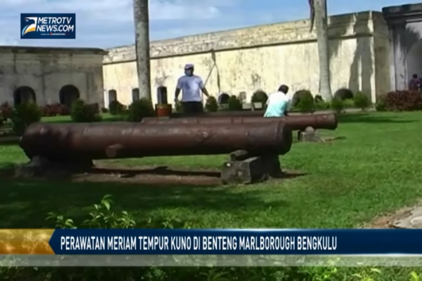 Metrotvnews.com, Bengkulu : Petugas BPCB (Balai Pelestarian Cagar Budaya) Jambi dan Bengkulu akan mencuci dan menghilangkan karat serta kuman pada puluhan meriam tempur kuno di Benteng Marlborough, Bengkulu, Rabu (21/5/2014). Meriam peninggalan kolonial Inggris itu berada di benteng yang dibangun Inggris Tahun 1713-1719 dan menjadi benteng pertahanan terbesar di Indonesia dan terbesar kedua warisan kolonial Inggris setelah benteng di Madras, India.