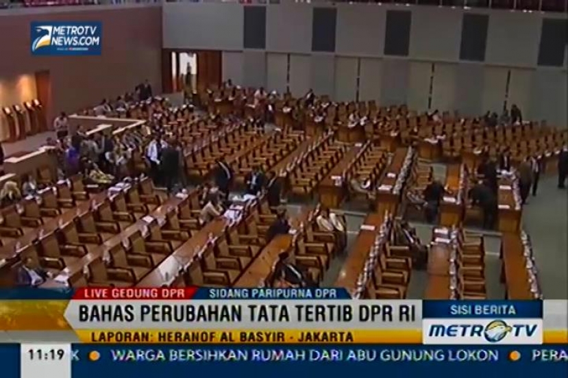 Sisi Berita, Selasa (16/9/2014): Rapat paripurna yang membahas laporan terkait dengan perubahan tata tertib DPR RI akan disahkan hari ini. Panitia khusus tata tertib DPR telah memutuskan rancangan peraturan dibawa ke rapat tingkat dua meski sejauh ini ada beberapa fraksi yang menolak karena belum ada keputusan dari MK mengenai UU MD3.