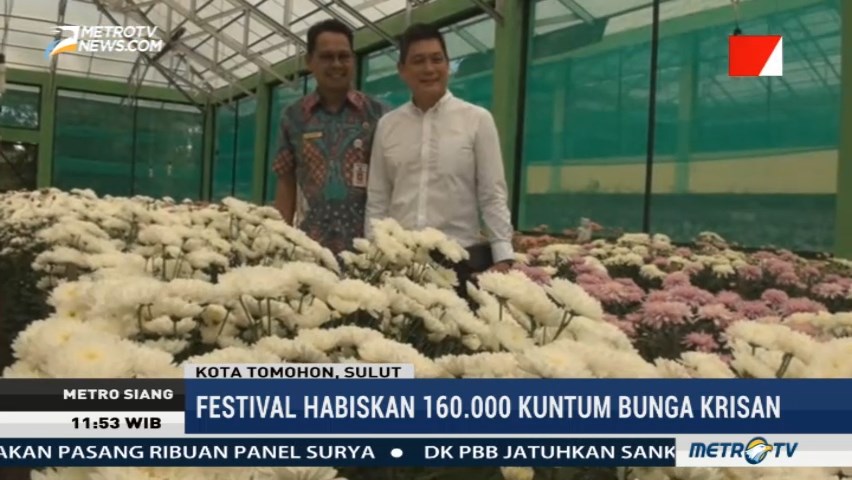 Festival bunga di Kota Tomohon, Sulawesi Utara, kembali digelar untuk ketujuh kalinya. Agenda tahunan pariwisata Kota Tomohon ini diikuti ratusan peserta dan menghabiskan 160 ribu kuntum bunga krisan. Cek Berita dan Artikel yang lain di Google News