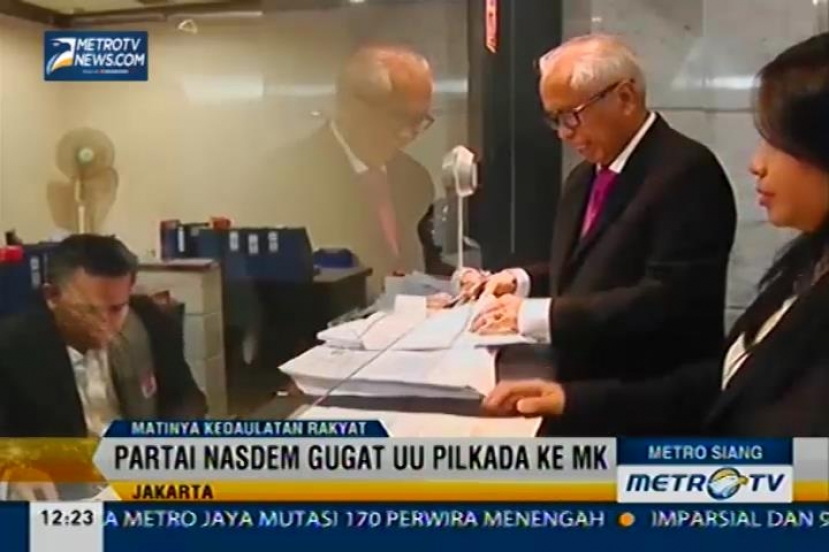 Metro Siang: Partai Nasdem mengajukan permohonan uji materi atas undang-undang pemilihan Kepala Daerah yang baru saja disahkan kepada Mahkamah Konstitusi. Melalui Ketua Mahkamah Partai Nasdem, OC Kaligis menyatakan UU Pilkada merupakan contoh konkrit pengabaian prinsip demokrasi.