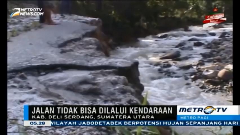 Metrotvnews.com: Empat desa di Kecamatan Gunung Meriah, Kab. Deli Serdang-Sumatra Utara masih terisolir setelah amblesnya jalan provinsi di wilayah ini. Kondisi jalan belum bisa dilintasi kendaraan, kondisi jalan ambles sepanjang 50 meter dengan kedalaman 7 meter akibat digerus banjir bandang tiga hari lalu. Cek Berita dan Artikel yang lain di Google News