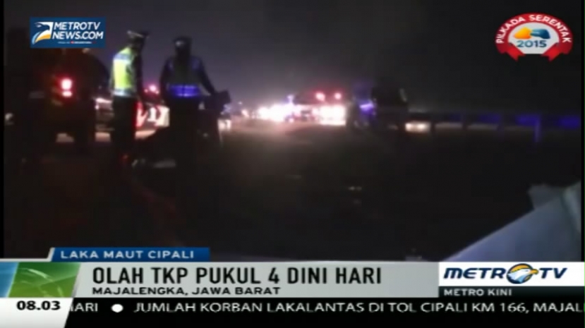 Tujuh orang pemudik tewas dan satu kritis dalam tabrakan minibus dengan bus di Tol Cipali KM 166 Majalengka, Sabtu (25/7/2015). Seluruh korban merupakan penumpang minibus namun identitas korban belum dapat dipastikan. Cek Berita dan Artikel yang lain di Google News