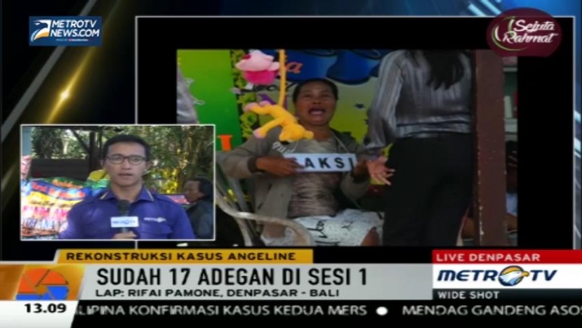 Proses rekonstruksi kasus pembunuhan Angeline di rumah tersangka Margriet berlangsung tertutup. Rencananya, dua tersangka yakni Margriet dan Agus akan memperagakan 81 adegan pembunuhan Angeline. Namun, baru 17 adegan di sesi I yang diperagakan, Senin (6/7/2015). Cek Berita dan Artikel yang lain di Google News