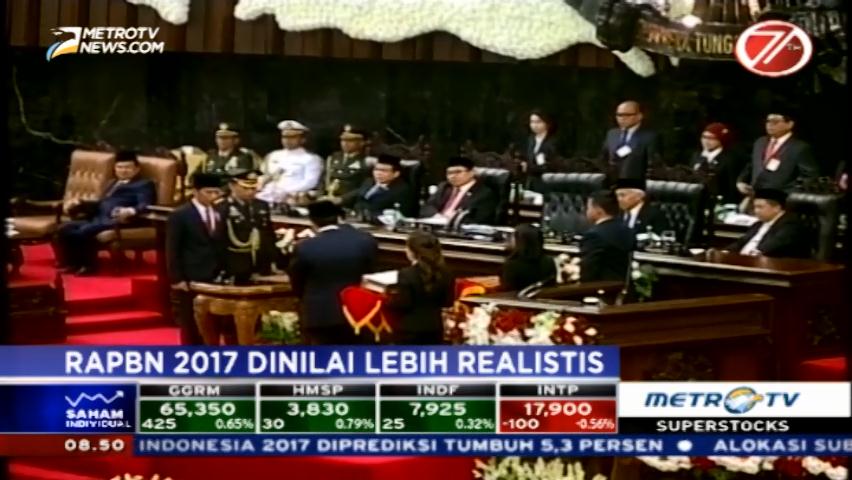RAPBN 2017 dianggap lebih realistis walau sisi penerimaan negara ditargetkan sedikit berkurang dibandingkan tahun 2016, Kamis (18/8/2016). Cek Berita dan Artikel yang lain di Google News
