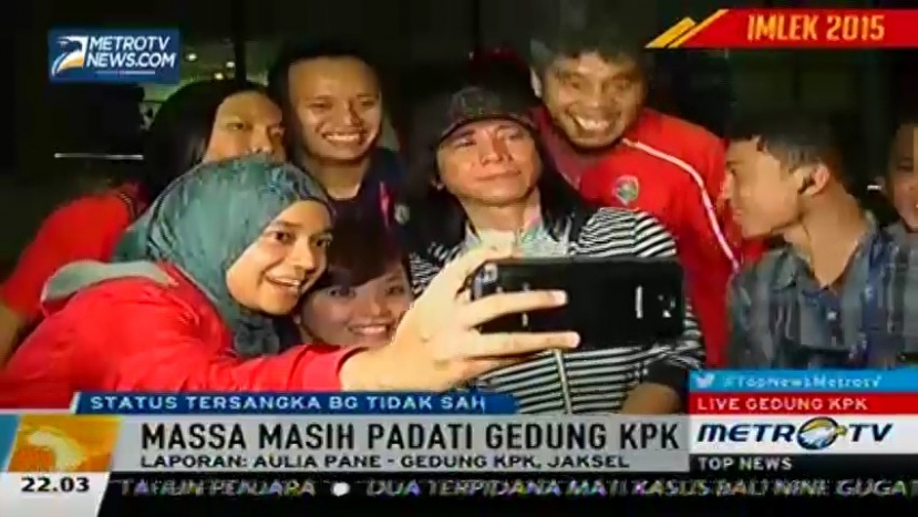 Meskipun suasana di depan Gedung KPK terlihat cukup sepi, namun dukungan terus berdatangan dari masyarakat dengan berbagai cara, seperti melakukan tarian tradisional. Selain itu, selebriti Abdee Slank juga datang ke Gedung KPK untuk memberikan dukungan untuk KPK, Senin (16/2/2015).