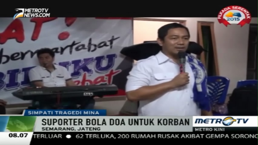 Puluhan suporter PSIS Semarang, Jawa Tengah, menggelar doa bersama untuk mendoakan para korban tragedi Mina di rumah salah satu suporter. Kegiatan ini dipimpin oleh calon wali kota Semarang, Jumat (25/9/2015).