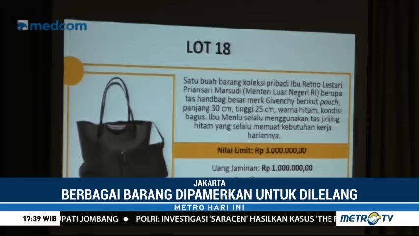 Lelang barang koleksi pribadi sejumlah pejabat negara mulai dari Direktur BUMN, Menteri Keuangan hingga Wakil Presiden digelar pada Rabu (28/2/2018) pagi. Proses lelang digelar secara konvensional dan online di Galeri Nasional Indonesia, Jakarta. Cek Berita dan Artikel yang lain di Google News