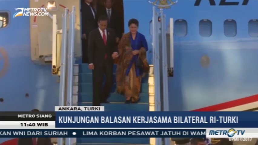 Presiden Joko Widodo dan rombongan tiba di Ankara, Turki pada Rabu (05/07/2017) malam waktu setempat. Kunjungan kenegaraan ini merupakan kunjungan balasan dan untuk memantapkan kerjasama bilateral kedua negara. Cek Berita dan Artikel yang lain di Google News