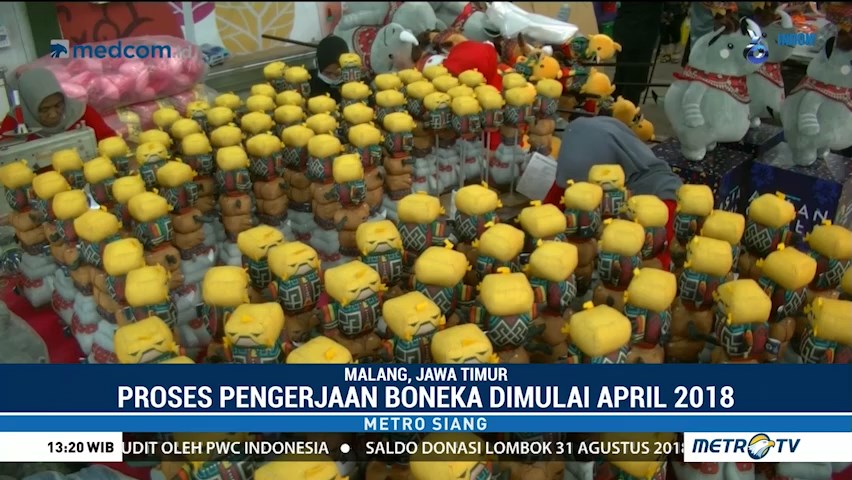 Perhelatan Asian Games 2018 di Jakarta dan Palembang tinggal menghitung hari. Berbagai persiapan akhir demi suksesnya pesta olahraga se-Asia ini terus dikebut tidak terkecuali pembuatan boneka Asian Games yang dibuat di Kota Malang, Jawa Timur. Cek Berita dan Artikel yang lain di Google News