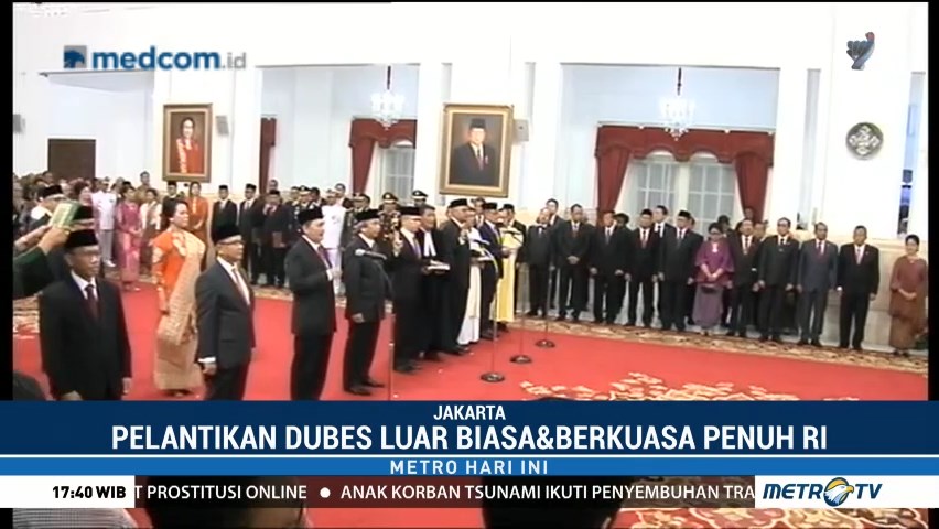 Presiden Joko Widodo melantik 16 duta besar baru untuk ditempatkan di sejumlah negara. Mantan Wakil Ketua MPR Hajriyanto Thohari hingga Juru Bicara Kemenlu Arrmanatha Nasir termasuk yang dilantik. Cek Berita dan Artikel yang lain di Google News