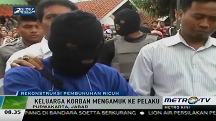 Rekonstruksi pembunuhan seorang ibu dan anak perempuan di Purawakarta Jawa Barat berlangsung ricuh. Kericuhan terjadi akibat kemarahan keluarga korban kepada pelaku pembunuhan, Sabtu (21/2/2015).