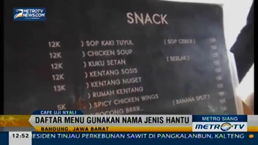 Sebuah kafe di Kawasan Jalan Guntur Burangrang Kota Bandung menyajikan konsep unik yaitu dengan jenis makanan dan tempat bernuansa mistis bernama "Uji Nyali Cafe", Jumat (5/12/2014). Cek Berita dan Artikel yang lain di Google News