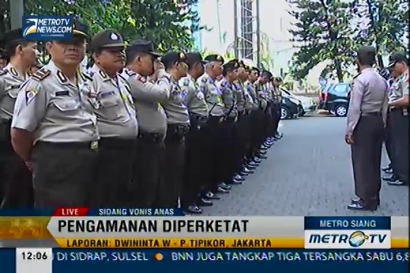 Metro Siang: Jelang dibacakannya vonis atas terdakwa kasus dugaan korupsi proyek Wisma Atlet Hambalang, Anas Urbaningrum, Rabu (23/9/2014), situasi di Pengadilan Tipikor sudah dalam penjagaan lebih dari 200 personil satuan keamanan. Untuk mengetahui situasi di sana, berikut liputan reporter Dwininta Widyastuti.