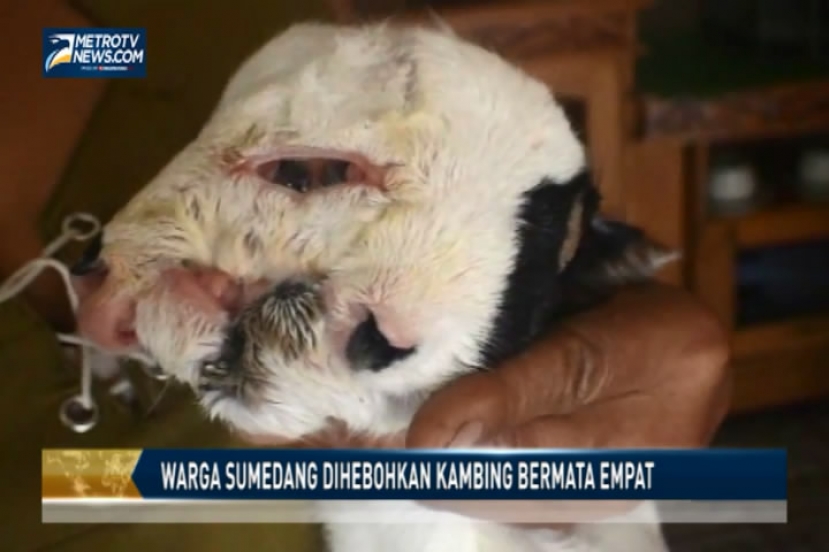Metrotvnews.com, Sumedang: Warga Dusun Sukamulya, Kecamatan Tanjungsari, Kabupaten Sumedang heboh, lantaran kelahiran seekor kambing, Kamis (16/10/2014). Pasalnya, penampakan kambing tersebut tidak lazim. Kambing tersebut memiliki empat mata, dua hidung dan dua mulut. Tidak hanya itu, konstruksi tubuh mulai dari leher hingga ujung kaki pun memiliki keanehan. Lihat video di sini: http://youtu.be/q34UdsXvPDY