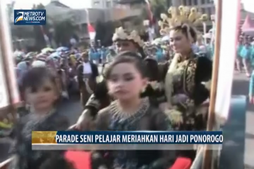 Metrotvnews.com, Ponorogo: Ribuan Pelajar menggelar parade seni budaya dengan berkeliling kota Ponorogo, dimulai dari Pendopo Kabupaten sampai jalan Suromenggolo, Minggu (24/08/2014). Kegiatan ini digelar dalam memeriahkan Hari jadi Kabupaten Ponorogo yang ke-518. Bupati Ponorogo berharap dengan adanya parade ini dapat memupuk rasa kesatuan dan persatuan.