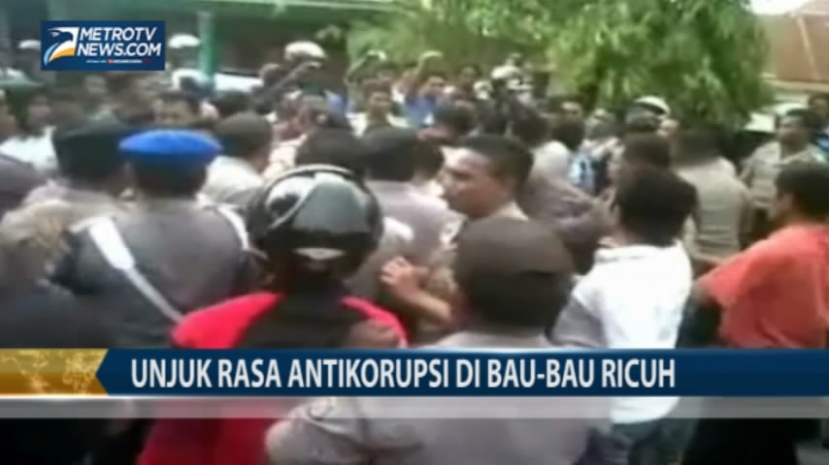 Metrotvnews.com, Baubau: Aksi unjuk rasa mahasiswa menuntut penuntasan kasus korupsi yang terjadi di Kota Baubau, Sulawesi Tenggara, diwarnai kericuhan, Selasa (9/12/2014). Mahasiswa melemparkan telur ke Kantor Kejaksaan Baubau dan terjadi saling dorong petugas dan mahasiswa. Lihat video di sini: http://youtu.be/2IgZ2GVbKYU
