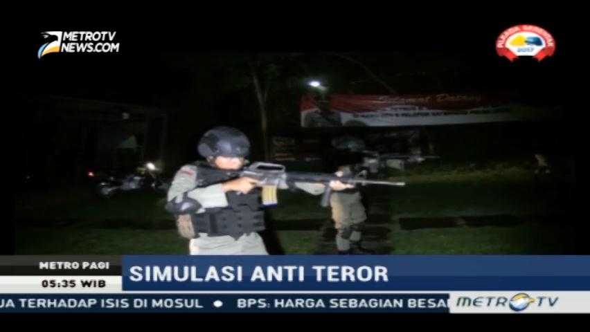 Jelang perayaan pergantian tahun, Satuan Brimob Polda Jawa Timur menggelar simulasi penanganan teror. Simulasi ini dilaksanakan sebagai pembekalan petugas dalam penanganan gangguan keamanan intensitas tinggi di malam hari.