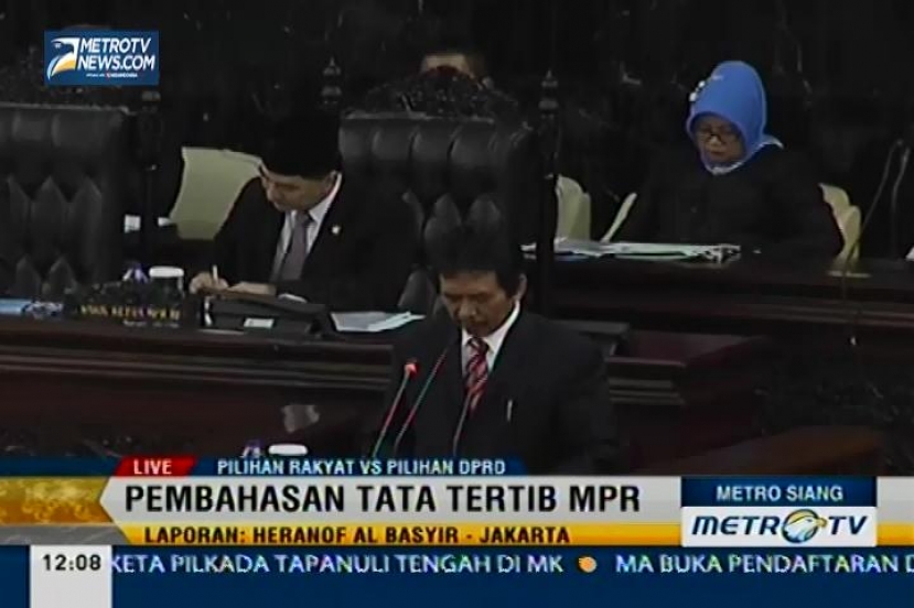 Metro Siang, Senin (22/09/2014): Majelis Pemusyawaratan Rakyat, MPR menggelar sidang paripurna, Senin (22/9/2014) pukul 10:00. Salah satu agenda adalah pembentukan panitia Ad Hoc penyusunan tata tertib MPR. Rekomendasi mengembalikan posisi MPR sebagai lembaga tertinggi juga direkomendasikan. Berikut laporan reporter Metro TV, Heranof AL Basyir langsung dari Gedung DPR, Jakarta.