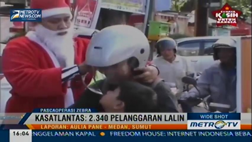 Satlantas Polresta Medan membagi-bagikan sebanyak 100 unit helm dan juga bunga mawar kepada pengendara yang melintasi Balai Kota Medan. Aksi ini dilakukan setelah 14 hari Polresta Medan mengadakan operasi zebra, Kamis (18/12/2014). Cek Berita dan Artikel yang lain di Google News