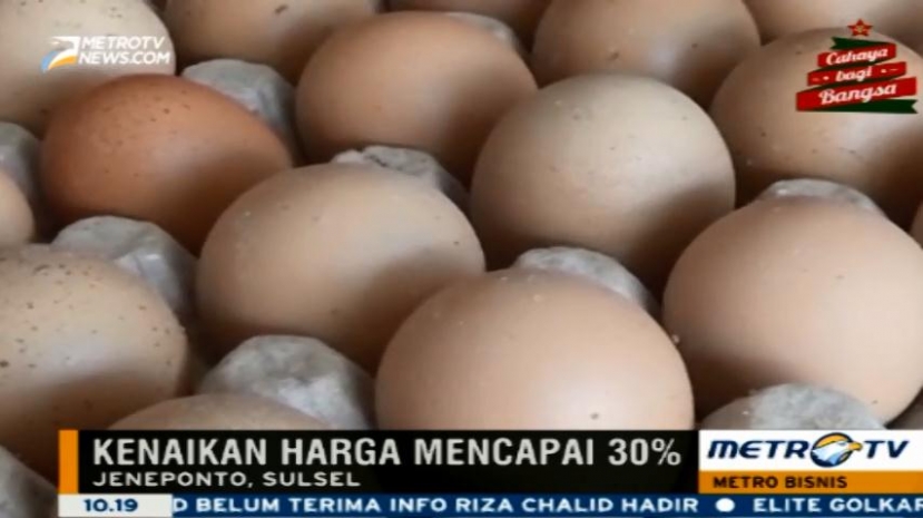 Metrotvnews.com: Menjelang Natal dan Tahun Baru, harga kebutuhan pokok di sejumlah daerah mulai merangkak naik. Di Jeneponto-Sulawesi Selatan harga telur naik hingga 30%, kenaikan ini disebabkan kurangnya pasokan baik dari pengusaha ayam petelur dari dalam maupun luar daerah. Cek Berita dan Artikel yang lain di Google News