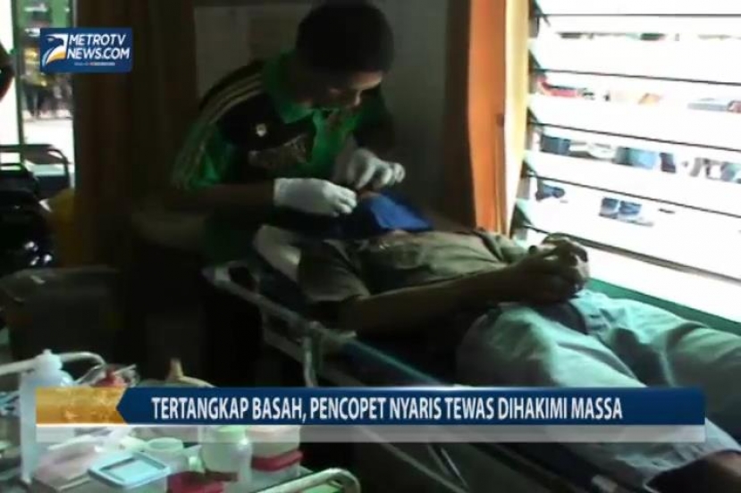 Metrotvnews com, Padang: Seorang pemuda nyaris tewas dihakimi massa saat kedapatan tengah mencopet di kawasan Pasar Raya, Kota Padang, Sumatera Barat, Jum'at (24/10/2014) siang. Pelaku terpaksa dilarikan ke rumah sakit terdekat, karena terdapat luka parah di bagian kepala. Lihat juga video disini: http://youtu.be/sPGv6walb4k