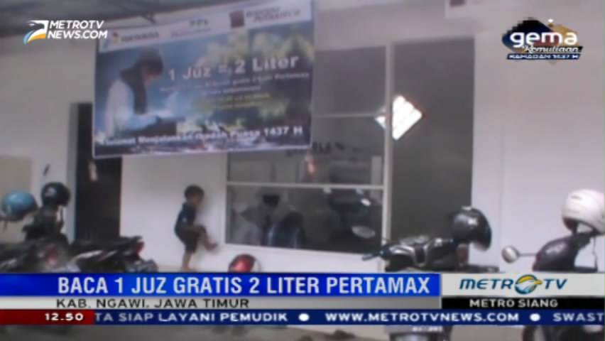 Salah satu SPBU di Kabupaten Ngawi, Jatim memberikan 2 liter BBM jenis pertamax gratis bagi warga yang membaca 1 juz Al-Quran di mushala yang tersedia, Rabu (8/6/2016).