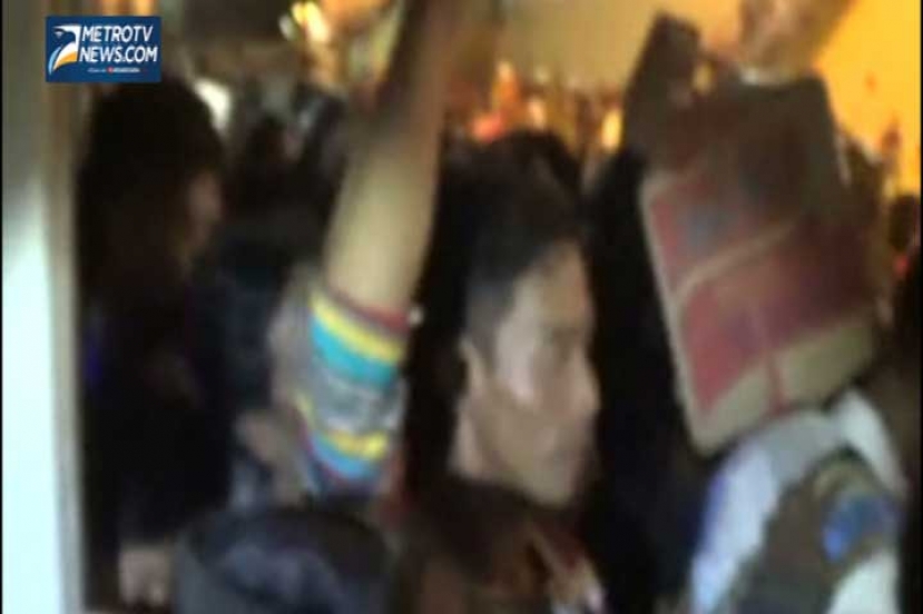 Metrotvnews.com, Makassar: Ribuan pemudik padati pelabuhan Makassar, Sulawesi Selatan para pemudik tujuan suarabaya ini terlibat kericuhan ditengah hendak naik ke atas kapal KM Sinabung, kendati terdapat anak-anak dan terjepit ribuan pemudik ini tetap terlibat aksi saling dorong untuk naik ke atas kapal petugas yang berjaga dan melihat kejadian ini terpaksa melakukan evakuasi terhadap sejumlah penumpang anak-anak yang terjepit ini.