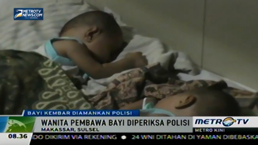 Polisi mengamankan dua bayi kembar yang diduga akan diperjualbelikan oleh dua orang wanita yang merupakan bibinya sendiri di Pelabuhan Soekarno Hatta, Makassar, Sulawesi Selatan, Rabu (1/4/2015). Cek Berita dan Artikel yang lain di Google News