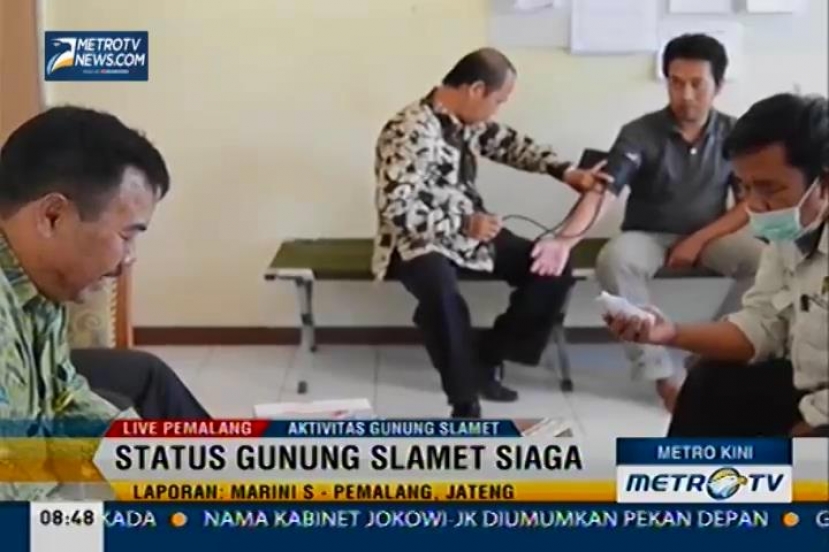Metro Kini, Rabu (17/9/2014): Gunung Slamet mengalami penurunan aktivitas terlihat dari puncak gunung yang cukup jelas dan tidak ada suara dentuman pada perut gunung. Kemarin pemerintah setempat memberikan pelayanan kesehatan terhadap petugas yang berjaga di Posko Gambuhan juga awak media yang berkontribusi memantau dan melaporkan perkembangan Gunung Slamet.