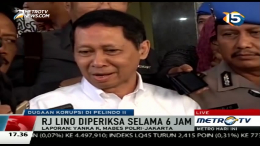 Direktur Utama PT Pelindo II RJ Lino kembali menjalani pemeriksaan sebagai saksi oleh penyidik badan reserse kriminal Polri selama enam jam. Usai menjalani pemeriksaan, RJ Lino mengaku bahwa ia tak merasa ada unsur pidana dalam kasus Pelindo II yang menjerat dirinya, Rabu (18/11/2015). Cek Berita dan Artikel yang lain di Google News