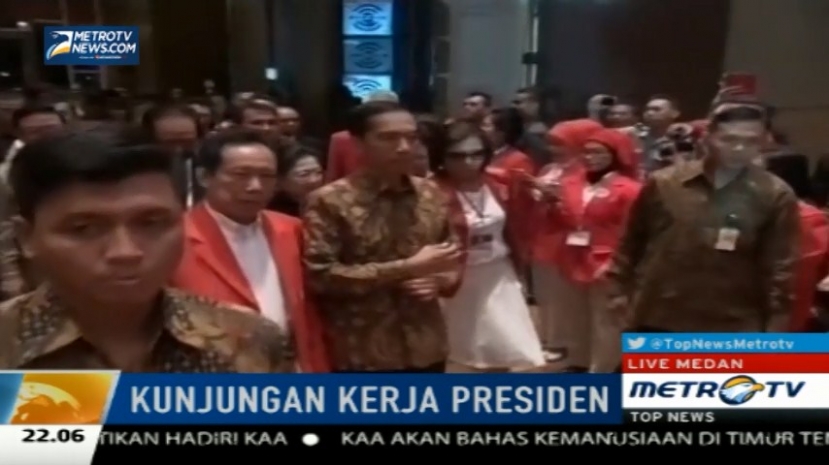 Presiden Joko Widodo hadiri Kongres PKPI keempat di Medan, Sumatra Utara. Ada sejumlah masalah yang disoroti antara lain kemiskinan, korupsi, naik turunnya harga BBM, dan yang menjadi sorotan utama adalah pengembangan sumber daya alam, Sabtu (18/4/2015). Cek Berita dan Artikel yang lain di Google News
