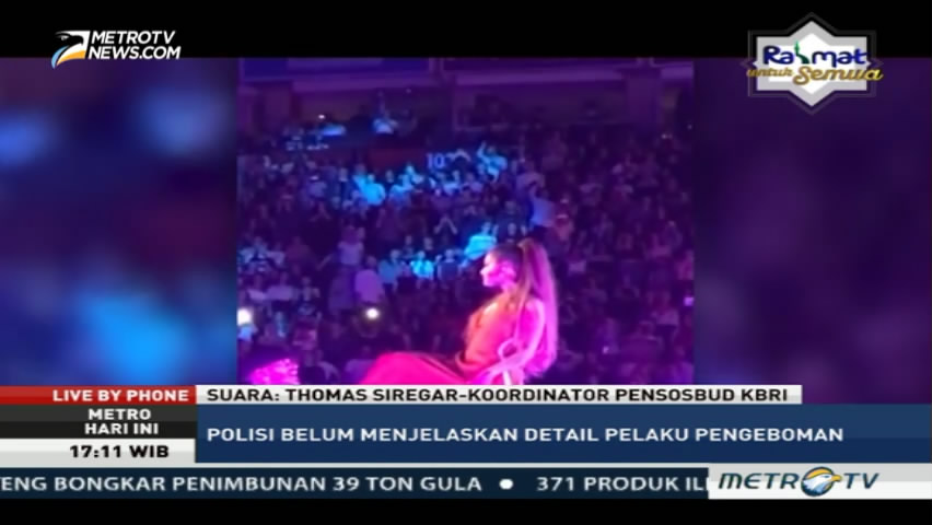 Sebuah ledakan mengguncang Kota Manchester, Inggris, saat konser penyanyi Ariana Grande digelar. Sejauh ini, berdasarkan pernyataan Kementerian Luar Negeri RI, tak ada warga negara Indonesia yang menjadi korban dalam peristiwa tersebut. Cek Berita dan Artikel yang lain di Google News