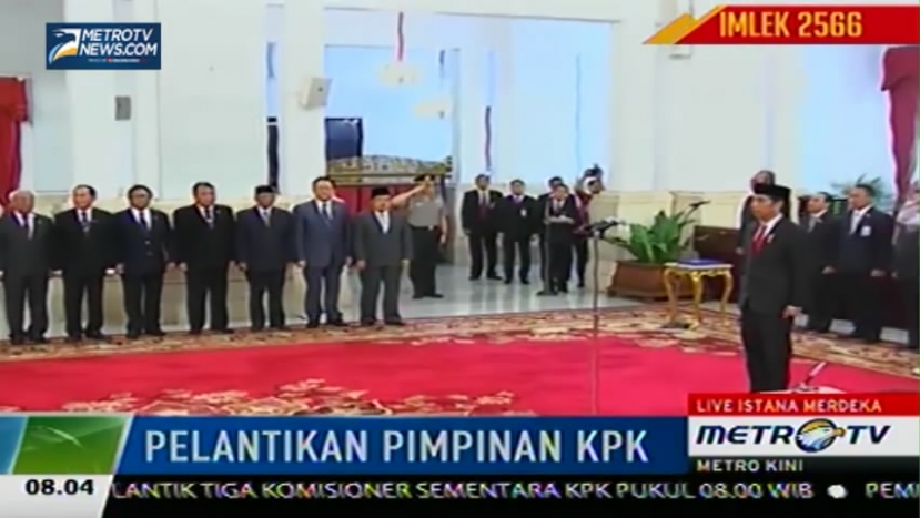 Setelah kekisruhan yang terjadi antara KPK dan Polri hari ini, Jumat (20/2/2015) Presiden Jokowi secara resmi melantik 3 pimpinan sementara KPK di Istana Negara Jakarta.