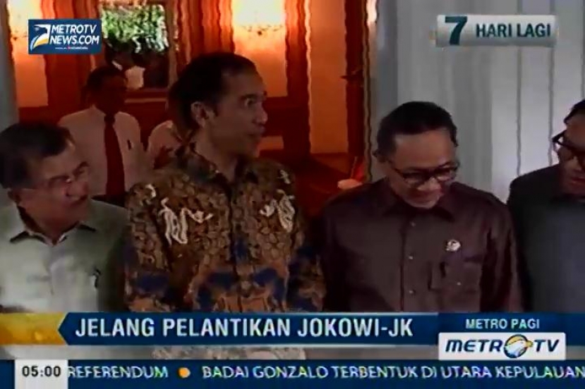 Metro Pagi: Presiden dan Wakil Presiden terpilih Joko Widodo-Jusuf Kalla menggelar pertemuan dengan Pimpinan MPR. Pertemuan membahas acara pelantikan presiden dan wakil presiden terpilih pada 20 Oktober 2014 mendatang, Selasa (14/10/2014).