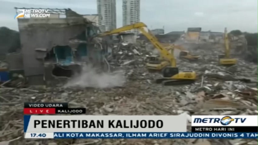 Penertiban bangunan di kawasan Kalijodo ditargetkan selesai satu hari. Namun proses pembongkaran harus dihentikan sementara karena hujan, Senin (29/2/2016). Cek Berita dan Artikel yang lain di Google News