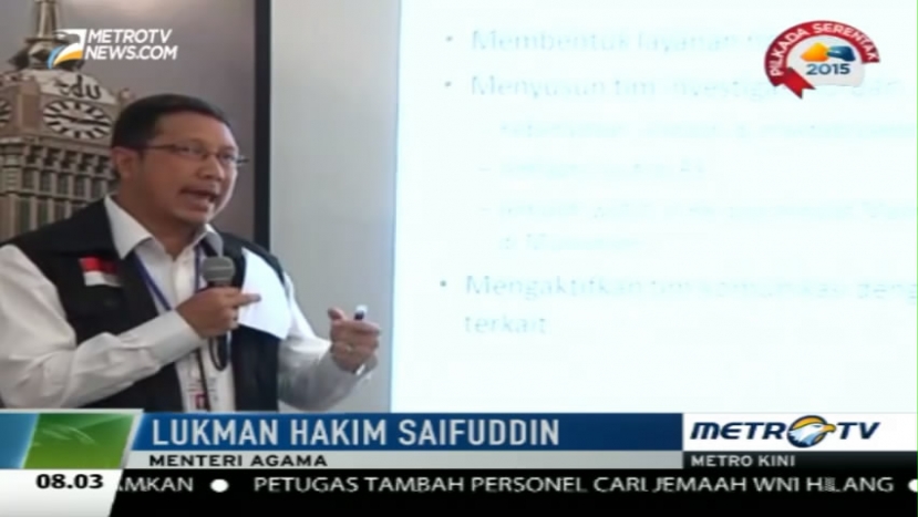 Menteri Agama Lukman Hakin Syaifuddin menjelaskan rumitnya proses identifikasi korban Tragedi Mina yang dilakukan oleh pihak Kemenag dengan otoritas haji Arab Saudi, Selasa (29/9/2015).