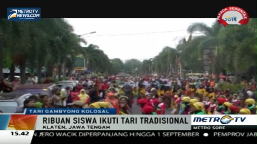 Ribuan siswa di Klaten, Jawa tengah, menari tari Gambyong Kolosal di sepanjang Jalan Protokol Klaten, Kamis (30/7/2015). Acara ini digelar dalam rangka memperingati HUT ke-211 Kota Klaten. Cek Berita dan Artikel yang lain di Google News