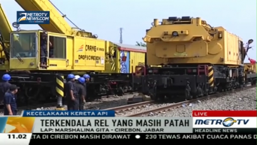 Pascatabrakan antarkereta di Cirebon, Jawa Barat, proses evakuasi kereta belum dilakukan karena mengalami beberapa kendala, seperti rel yang patah akibat tergelincirnya lokomotif. Nantinya, kereta-kereta ini akan dievakuasi menggunakan dua buah alat berat yang telah disediakan, Minggu (24/5/2015). Cek Berita dan Artikel yang lain di Google News