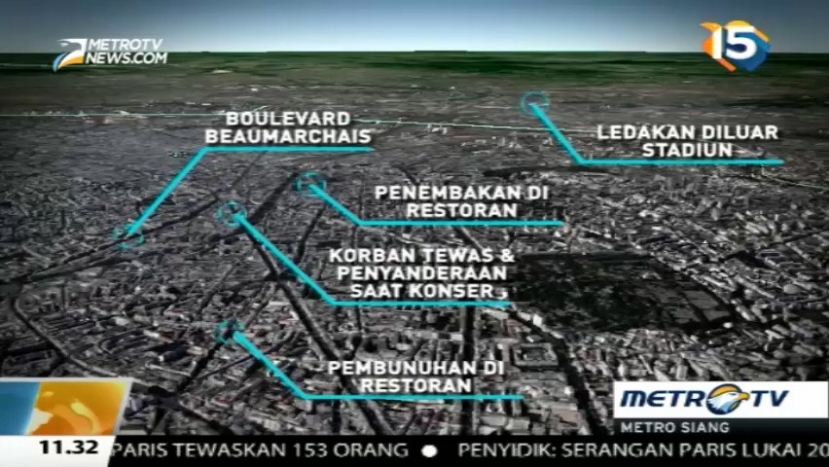 Hingga kini setidaknya dilaporkan 120 orang tewas dalam serangkaian serangan mematikan yang menyerang kota Paris, Perancis. Para korban yang menjadi sasaran teroris merupakan kaum muda yang sedang menonton konser serta warga kota Paris yang menghabiskan malam akhir pekan di tempat-tempat populer, Sabtu (14/11/2015).