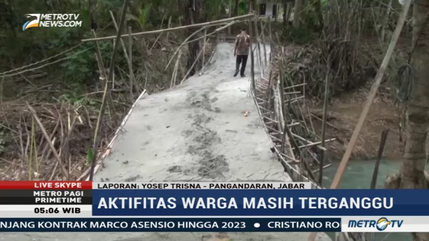 Aktivitas warga di dua dusun masih terganggu pascaambruknya dua jembatan akibat tergerus air sungai di Desa Sukahurip, Pangandaran, Jawa Barat. Sedikitnya 80 kepala keluarga di Dusun Bengkekan dan Dusun Cihanjuang terisolir dan kesulitan menuju Kota Pangandaran.
