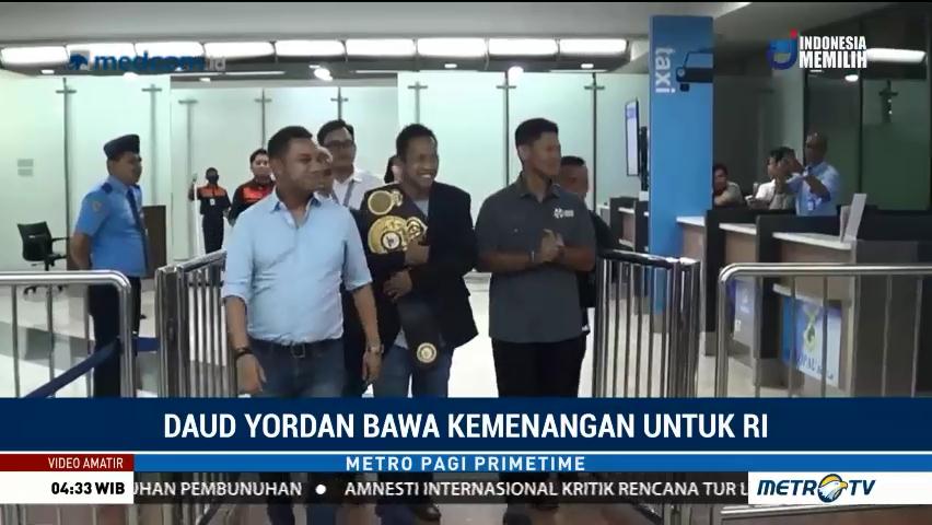 Petinju Indonesia Daud Yordan tiba di tanah air setelah berhasil mengalahkan petinju Rusia. Daud membawa dua gelar juara kelas ringan yaitu WBA Asia dan WBO Intercontinental. Cek Berita dan Artikel yang lain di Google News