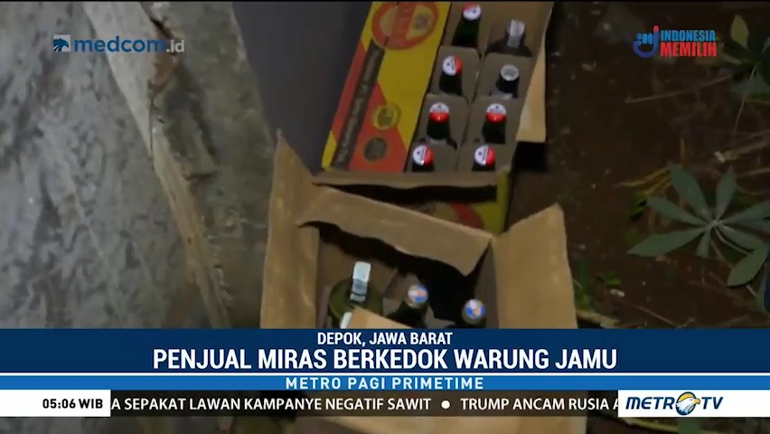 Tim Buru Sergap Polresta Depok menggerebek sebuah toko miras berkedok warung jamu. Polisi menyita puluhan kardus miras yang disembunyikan di kebun singkong. Razia dilakukan menyusul maraknya warga Depok yang tewas akibat miras oplosan. Cek Berita dan Artikel yang lain di Google News