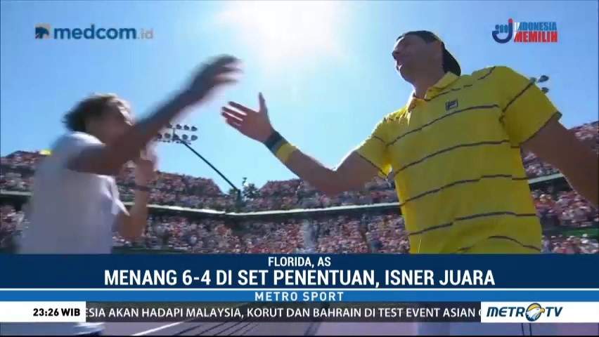 John Isner memenangi gelar ATP Master 1.000 pertamanya dengan menjuarai ajang Miami Terbuka. Petenis AS ini berhasil bangkit untuk mengalahkan unggulan keempat Alexander Zverev.